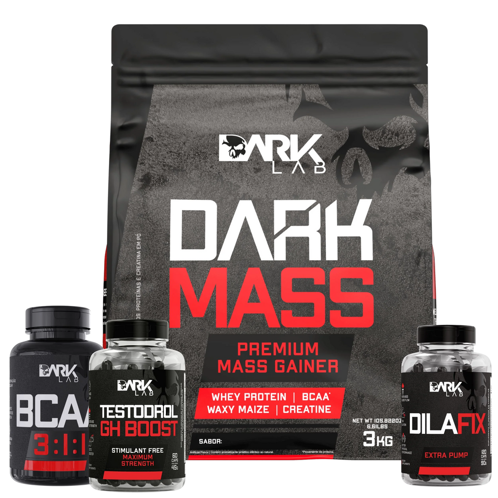 O Kit Massa Rápida entrega tudo o que você precisa para evoluir de forma acelerada, sem abrir mão da qualidade Dark Lab. Uma fórmula estratégica para quem quer ver resultados rápidos e sólidos, com mais força, mais volume e mais intensidade.