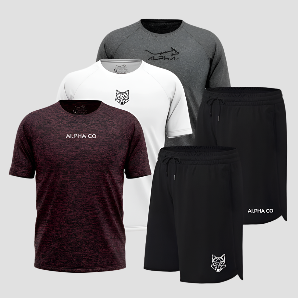Kit Esportivo Dry Fit 3 Camisetas + 2 Bermudas